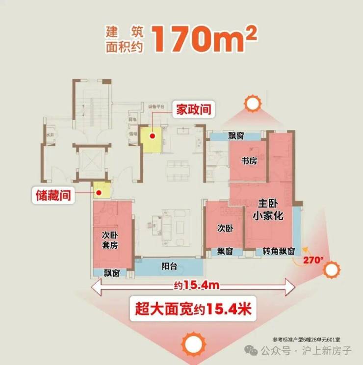 室内,该户型足足有 约15.4米面宽 ,做到惊人的四开间朝南,让阳光全域覆盖!
