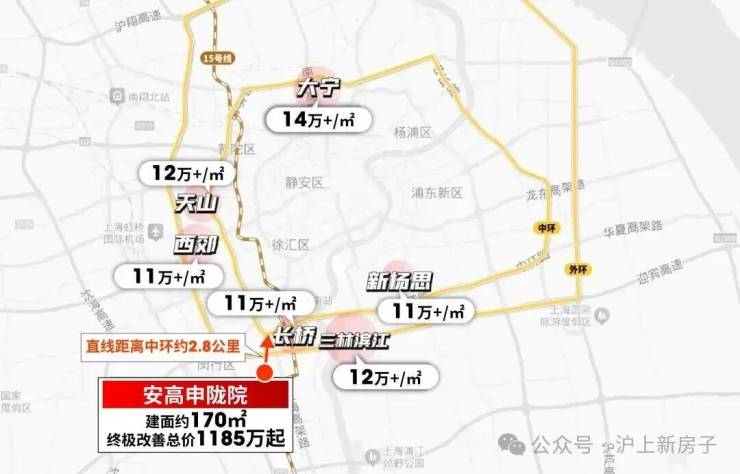 安高申陇院直线距离中环仅2.8公里,同维度的新房起码都是11万朝上的单价, 1200万左右预算基本都只能买百平左右3房 ,说实现真的谈不上改善。