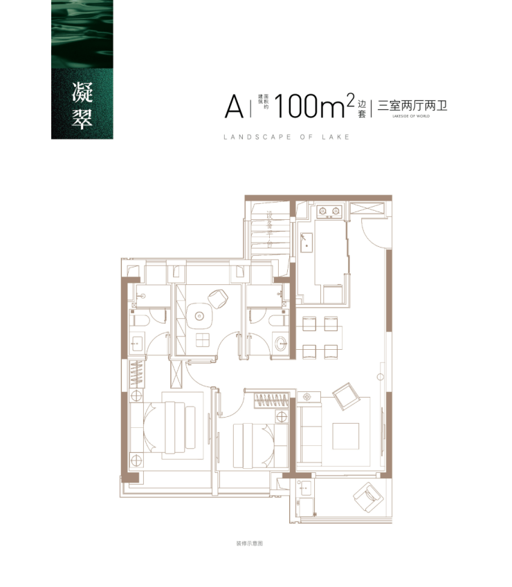 1. 建面约 100㎡ 三室两厅两卫:刚需上车的完美选择