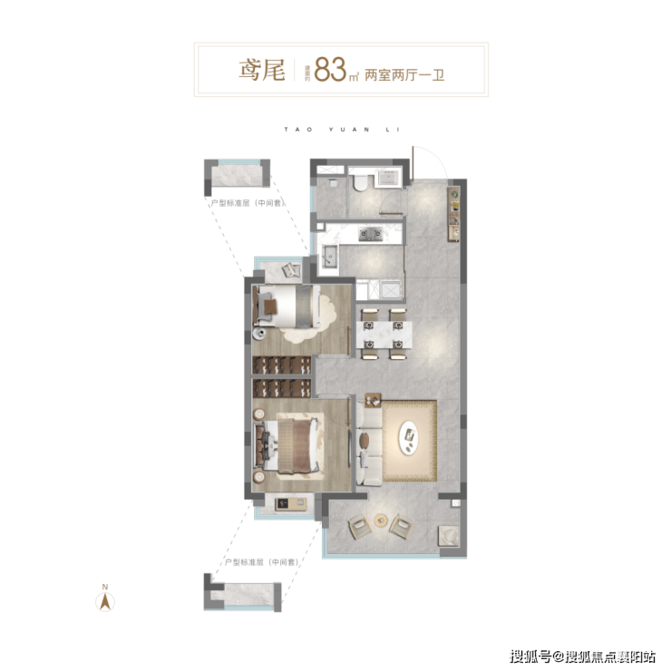 (一)建面约 83㎡ 两室两厅一卫 —— 爆款刚需两房(总价约 670-730 万)