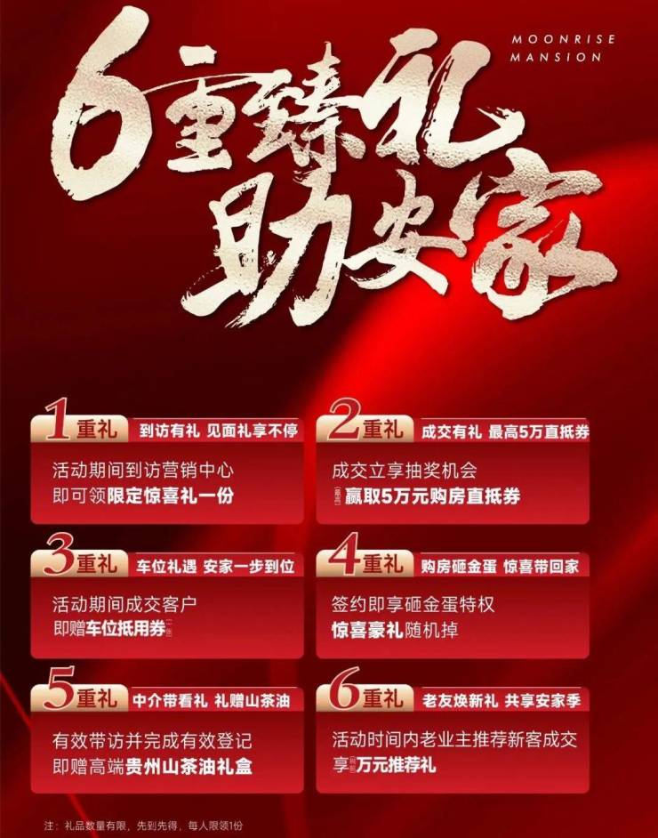 以品质进阶生活理想的同时,现推出 六重购房尊享礼遇 ,用超级让利优惠回馈客户, 稀缺席位,分秒递减,机会不容错失!