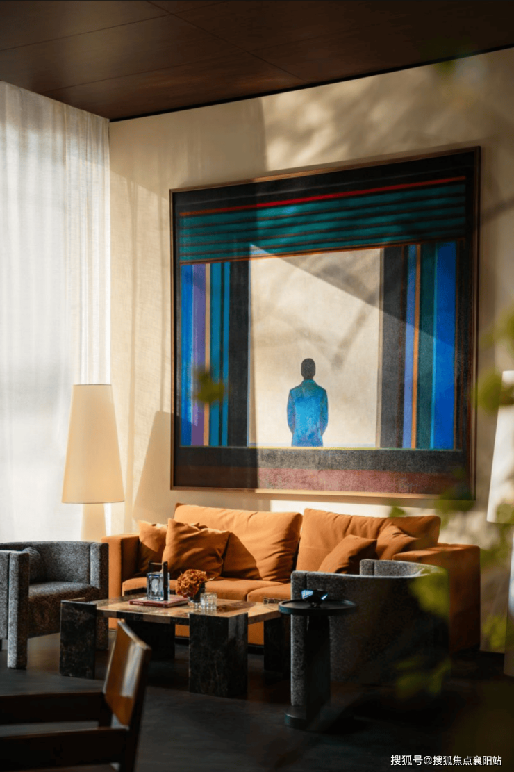四季隐秀·東玠, 于尺度、比例、材质和光影之间,保持一种内敛而有力的节奏感 。白金画框、漂浮飞檐、木石隔栅以及风情序厅等,以现代洗练的设计,打破古典主义的强对称轴线,轻盈而丰富。