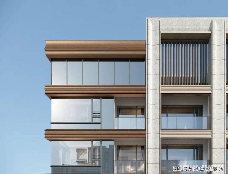 中海环宇玖章可视面都是 古铜色金属铝板、米黄色铝板/石材、边套270°大转角飘窗 ,且从正面、侧面到背面,立面都保持精致统一,四面平权尽显高端质感。