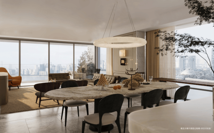 区别于市场上常见的“伪滨江”(仅单侧临江),其采用270°环幕玻璃幕墙设计,将黄浦江景无死角纳入视野,搭配LDKB一体化巨厅、全屋智能系统与定制化精装,重新定义滨江居住的奢适尺度。