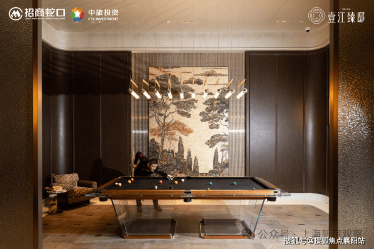 鎏金九球室: 优雅的社交式运动;在精致松弛的场域里,运动的专注浸润着舒适格调。壹江臻邸九球室内配置高端设备,以通透暖光赋予空间以质感,柔化挥杆撞球的厚重,让圈层社交运动变得轻松而惬意。