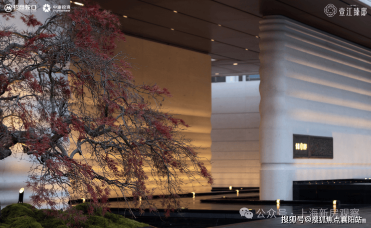 在招商首席设计师制的统筹下,项目实景呈现出来的,不同于传统示范区极尽堆砌的雍容感,而是从建筑到空间的一气呵成:臻选奢材名木而不滥用,汲取经典而非简单复刻,最终融萃成一座极高浓度的景观美学馆。从城市界面步入静谧水院,一场深刻的情绪过渡悄然转换——