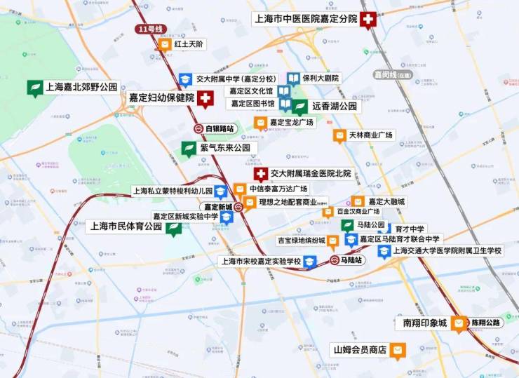 医疗配套方面,项目周边优质医疗资源丰富,3 公里内覆盖双三甲医院,15 分钟健康生活圈,为家人健康保驾护航。直线距瑞金医院北部院区(三甲)约 3 公里,驱车 10 分钟可达,瑞金医院作为上海顶级三甲医院,医疗设备先进、科室齐全,提供高端医疗保障;同时紧邻嘉定区妇幼保健院,满足妇幼健康需求;周边还有嘉定区中心医院、社区卫生服务中心等,实现 “小病不出社区,大病有保障” 的医疗格局,全方位守护全家人的健康生活。