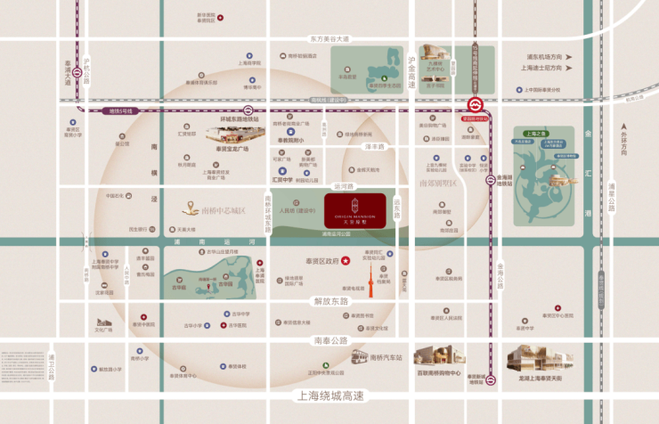 该地块位于南桥核心地段,南侧紧邻浦南运河休闲步道,北侧有S4高速出入口,紧邻地铁5号线环城东路站,1站至望园路站还可换乘15号线(南延伸段在建),进站直达紫竹高新园区和莘庄城市副中心,北侧还有市域 南枫线 (在建)环城西路站,周边三轨交环绕。