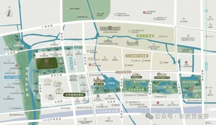 项目紧邻新松江路、辰塔路、嘉松南路、沪松公路等城市主干道,无缝衔接 G60 沪昆高速、嘉闵高架、沪闵高架、S20 外环高速四大城市高架,形成 “四纵四横” 骨架路网,自驾出行高效便捷:
