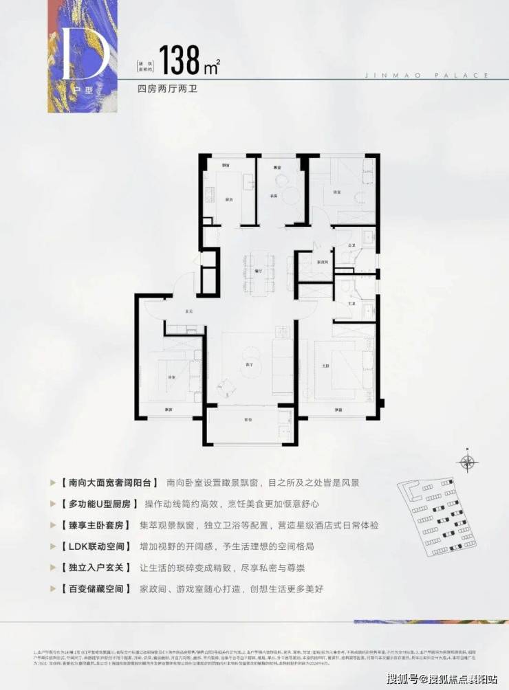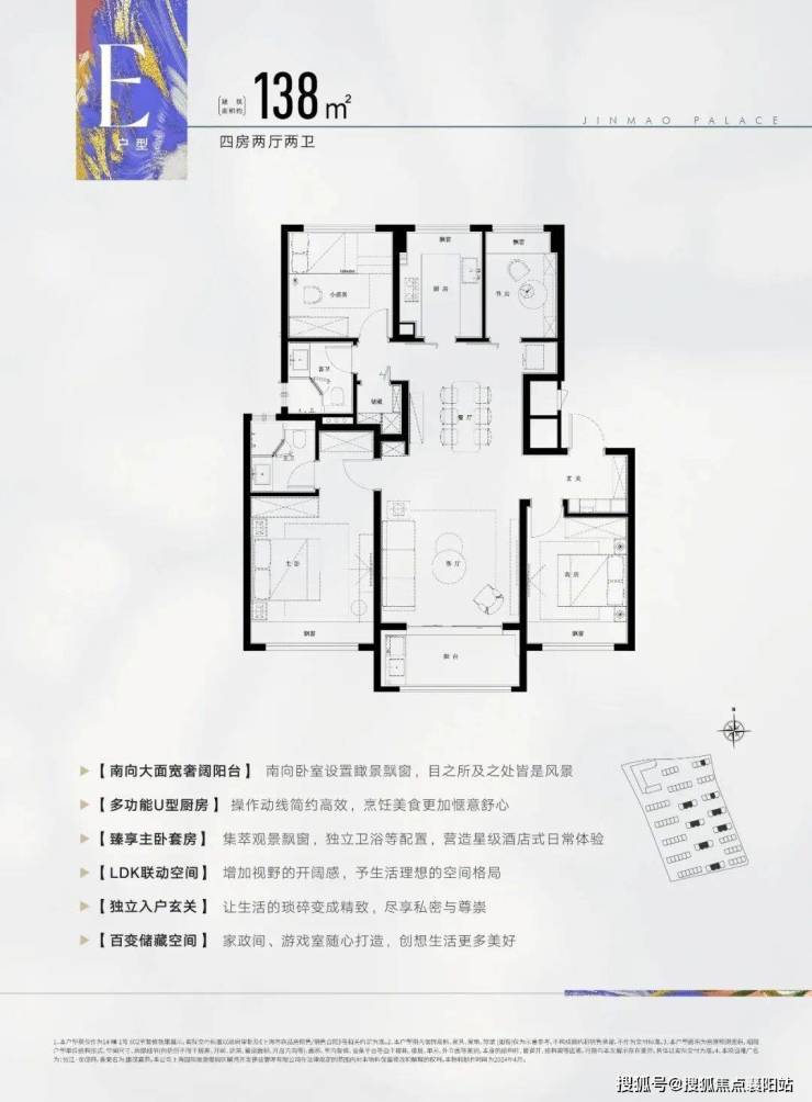 ✅张江金茂府售楼处电话:4009975759✅客厅连接7米宽景阳台,摆上一张藤椅,看书、品茶、赏园景,惬意时光就此开启。U型厨房设计,洗切炒动线流畅,妻子在厨房忙碌时,也能与客厅的家人轻松互动,张江金茂府售楼处电话:400-9975-759。 中间套约138㎡4房2厅2卫▼