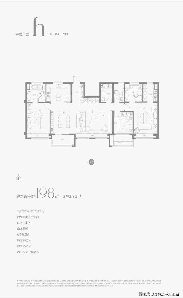 建面约138㎡的中间套户型, 与边套略有差异,但同样尺度感强、细节满满