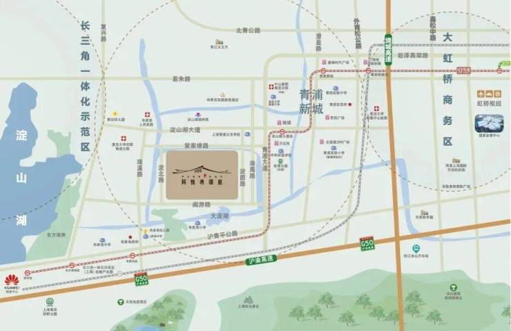 轨道交通方面,项目紧邻轨交 17 号线,直线距离朱家角站约 2.6 公里、淀山湖大道站约 2.5 公里,可通过公交接驳或骑行快速抵达。17 号线作为上海西部重要的轨交干线,8 站直达虹桥火车站,无缝换乘 2 号线、10 号线,15 分钟直达虹桥商务区,30 分钟覆盖人民广场、静安寺、陆家嘴等上海主城核心节点。同时,规划中的 17 号线运能提升计划预计 2026 年实施,将进一步提升出行效率,让业主通勤更便捷。