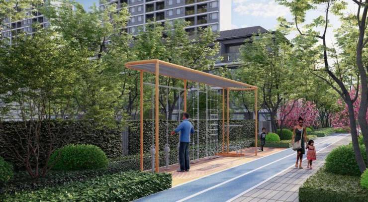 社区以 “ 两轴六园 ” 打造森态园林,约 170 米十字森林轴线串联四大主题花园,全龄活动区、颐养花园、健康跑道、儿童乐园全覆盖。步入社区,绿植繁茂、水景灵动、步道蜿蜒,老人散步、孩子玩耍、青年休闲都有专属空间,四季有景、一步一景,居住氛围感拉满。建筑立面简约大气,米白 + 深灰配色,现代时尚、历久弥新。