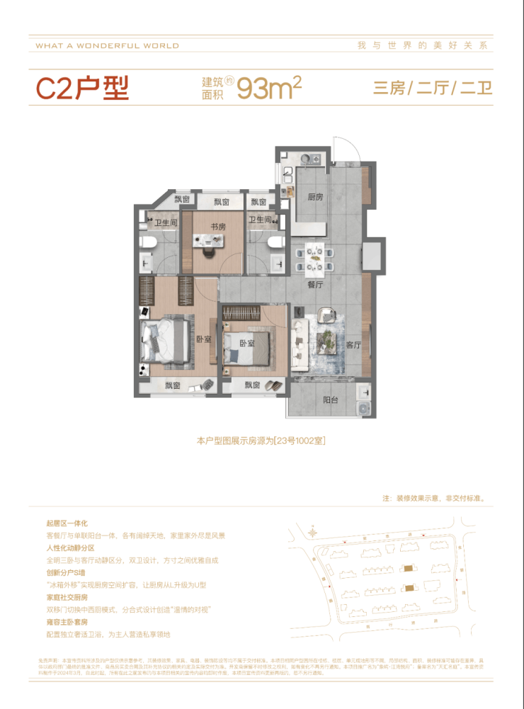 2. 全能户型:76-143㎡2-4 房,高得房率 + 全明通透
