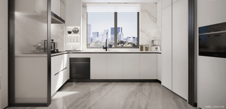 厨房方面,项目不仅使用了住建部好房子厨电样板房间同款,更是贴心的设计了 集成烹饪中心 (烟灶联动、制冷空调、蒸烤同烹)、 集成净洗中心 (水槽与洗碗机一体化),更加贴合本土的烹饪习惯: