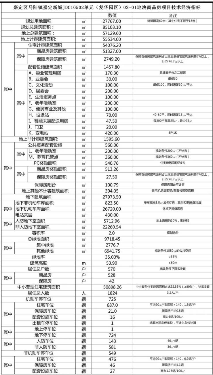 项目总占地面积约 3.27 万平方米,总建筑面积约 8.5 万平方米, 容积率仅 2.0 (远低于嘉定新城平均 2.5,板块稀缺低密指标), 绿化率高达 35% ,规划 8 栋 14-18 层纯小高层住宅、1 栋 2 层社区邻里中心,总户数 528 户,采用 全人车分流设计 ,车位配比约 1:1.3(地下 725 个车位),新能源充电桩全覆盖,彻底解决业主停车困扰,让社区内部更显静谧有序。
