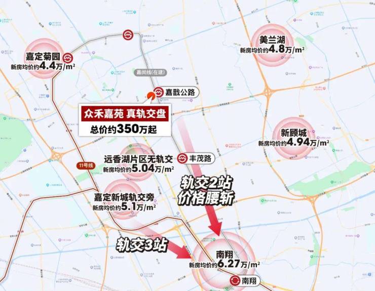 众禾嘉苑占位嘉定新城核心,扼守嘉闵线嘉戬公路站地铁口(直线约 20 米),处于 “嘉定老城 + 嘉定新城 + 虹桥商务区” 三大板块交汇核心,无缝承接双城联动发展红利,地段价值得天独厚。