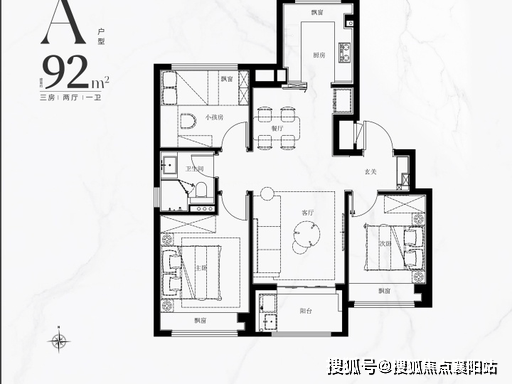 1. 92-94㎡三房两厅一卫:刚需上车首选,紧凑实用
