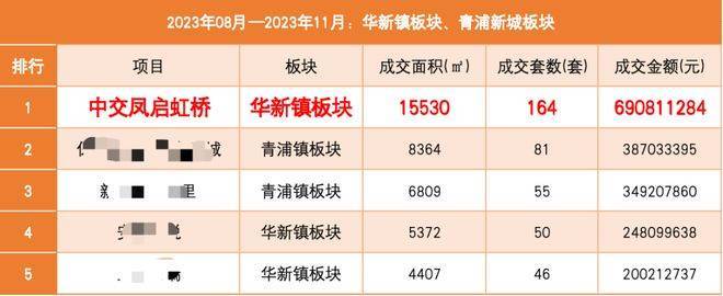 作为热销10亿+的项目,继首开之后,中交凤启虹桥再次荣登8-11月华新、青浦镇板块在售新盘中,成交套数、成交面积、成交金额三大榜首!且远超第二名成交2倍之多!名副其实的实力选手!