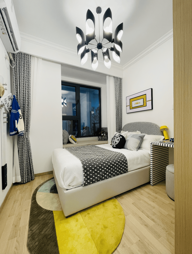 卧室 : 主卧套房 (独立卫浴 + 衣帽间 + 飘窗),私密性与舒适度拉满;两间次卧空间均衡,老人、孩子居住都舒适。