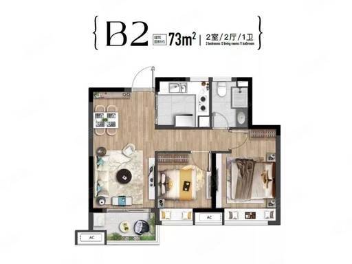 1. 建面约 73-74㎡两房两厅一卫:刚需上车首选,总价 310 万起