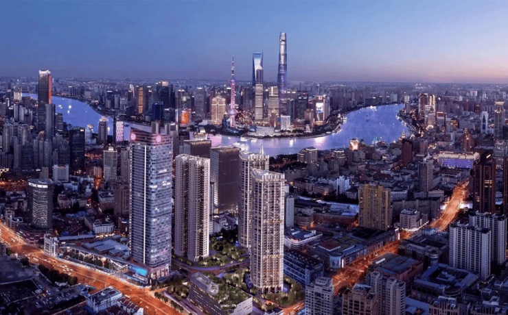 浦西第一高住宅地标:3 栋楼高达 160-170 米,38-40 层,垂直高度刷新浦西住宅纪录,成为北外滩天际线核心标识。