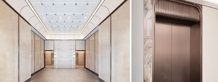 全干挂石材立面 :外立面采用巴西都伯斯金麻、宏宇金麻全干挂石材,搭配铝板线条,现代简约风格,历久弥新,兼具质感与颜值。