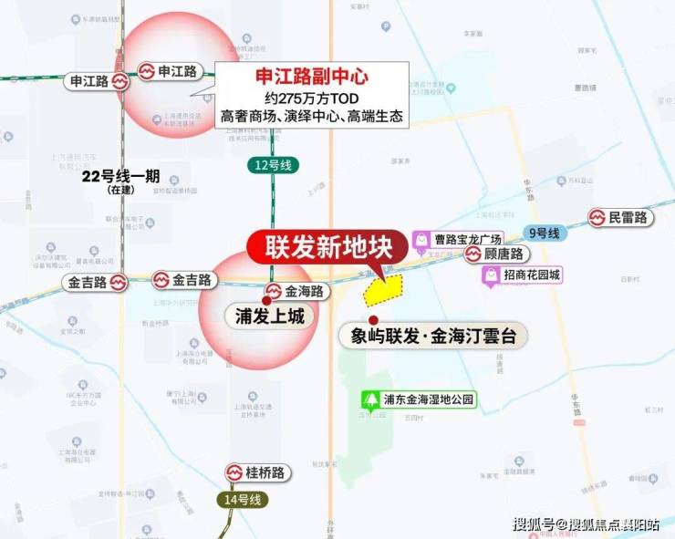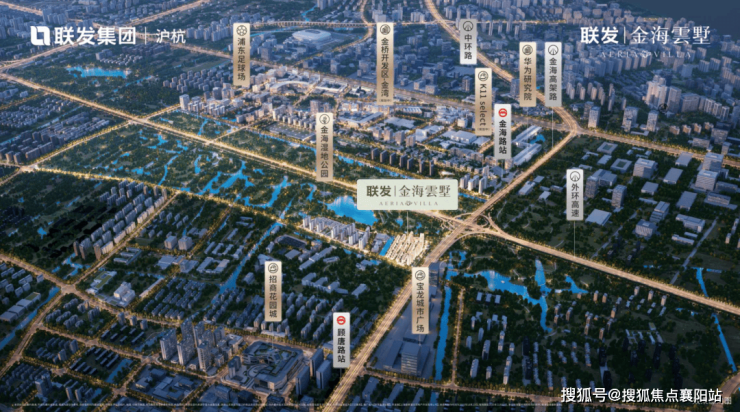 联发金海雲墅地处金桥东,紧邻金海湿地公园,而打开地图我们就可以发现,跨过金海湿地公园,西侧就已经是金桥核心产业区:浦东七朵金花之一的金湾,与项目直线距离只有600m左右!