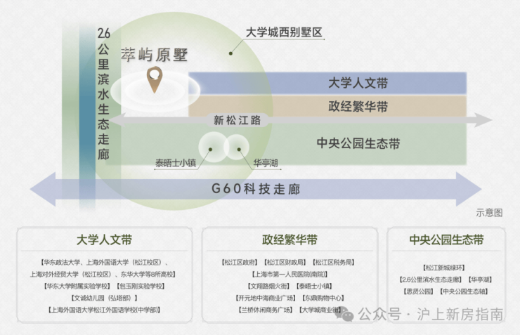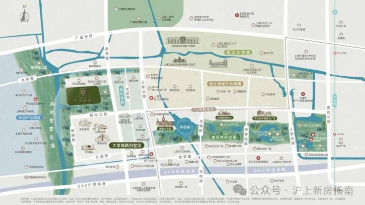 国贸萃屿原墅落址上海市松江区思涌路与新松江路交汇处(近辰塔路),雄踞松江新城 2.0 核心居住区,北接松江大学城,南临 G60 科创走廊,东靠政务金融中心,西邻油墩河谷生态规划区,是板块内近十年唯一出让的纯低密宅地,稀缺性与生俱来。