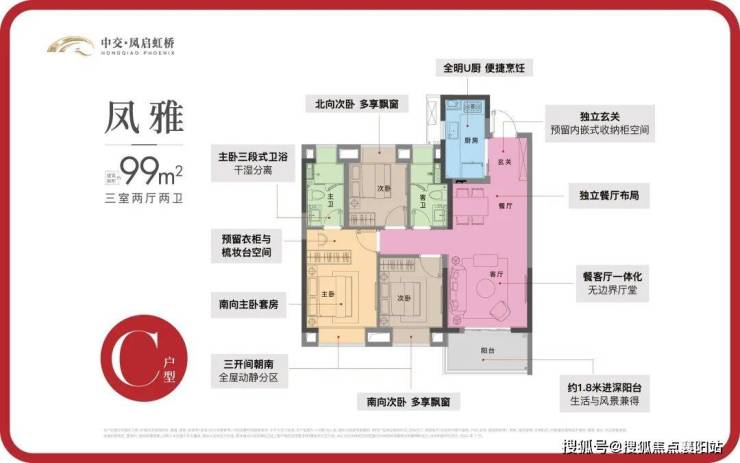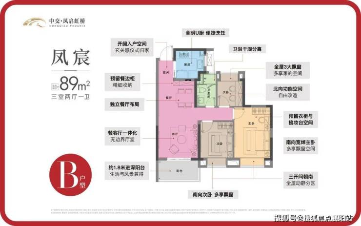 核心亮点 : 三开间朝南 ,全卧室采光,阳光鲜氧全天候入户; LDK 一体化 ,客餐厅连通形成超大会客空间; 独立入户玄关 ,超强收纳; 主卧套房 + 双次卧 ,三房全功能,适配家庭成长需求; 宽景阳台 + 多飘窗 ,拓展空间、观景休闲。