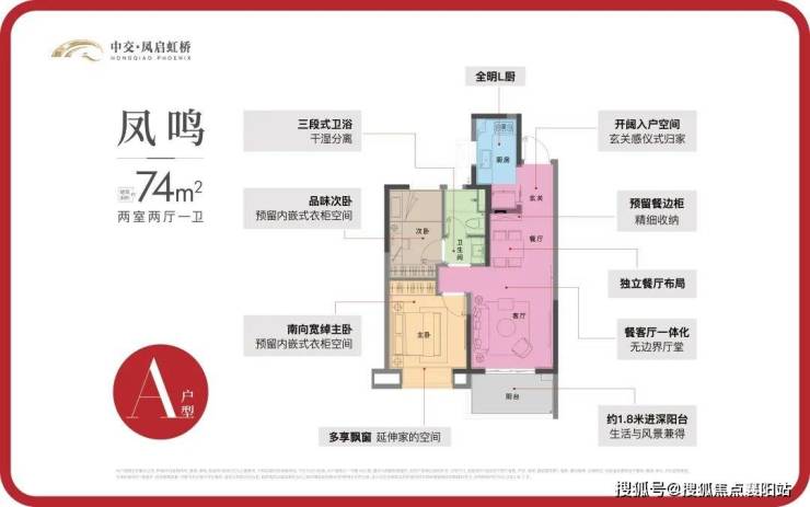 (一)建面约 74㎡ 两室两厅一卫:虹桥爆款小户型,296 万起轻松上车