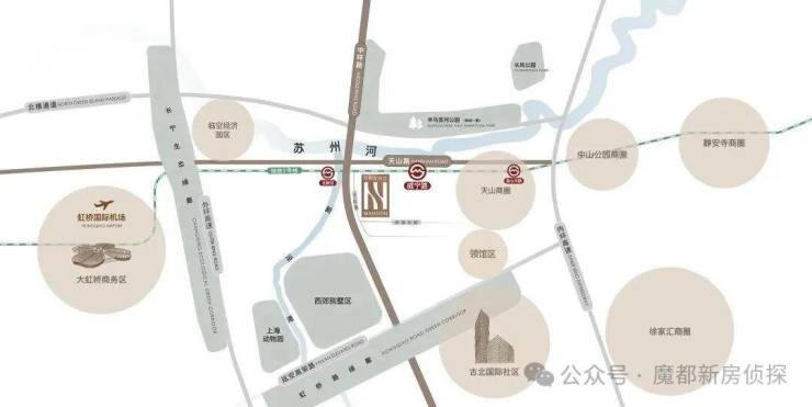 天山路有2号线串联,又邻近苏州河,环境非常宜居,沿线早就“塞满”了高端住宅小区,上一个入市的新房还要追溯到西郊紫薇花园。