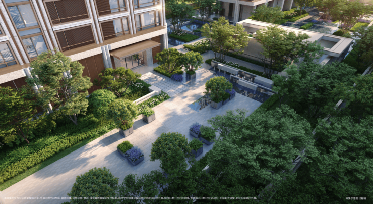 园林景观 :融合海派造园理念与现代景观美学,打造 “九曲花街” 主题园林,约 160 米超长水系中轴景观,全冠移植香樟树,四季有景