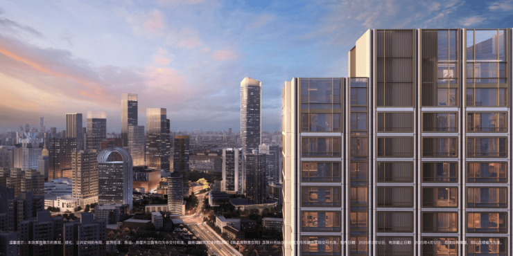 建筑风格 :现代极简公建化立面,进口白石材干挂 + 玻璃幕墙,窗墙比高,采光通透,颜值与质感兼具