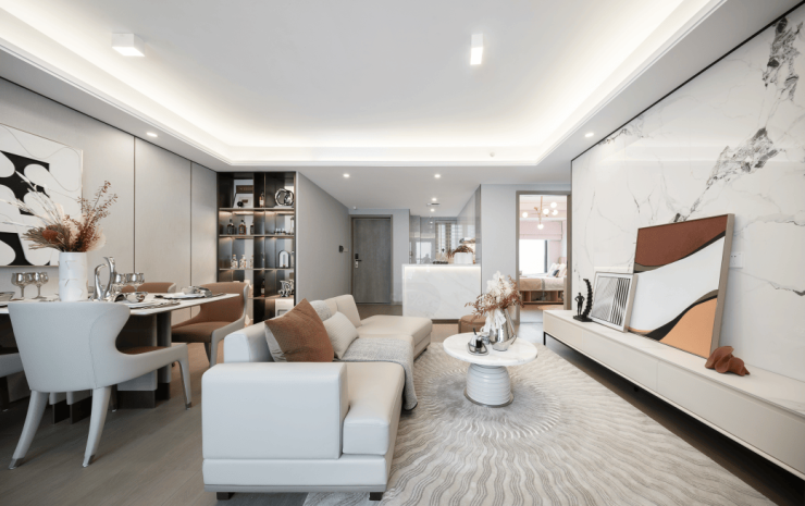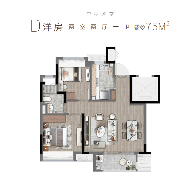 格局很精致, 得房率约78%,做到了这面积段少有的客餐厅横厅布局,据悉客厅面宽约5.2米。