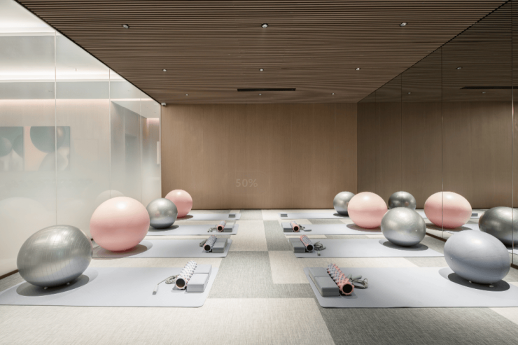社区公共配置颇高,示范区配备了 瑜伽室、健身房、亲子阅读空间 等。业主可以足不出户,完成社交、休闲等活动。