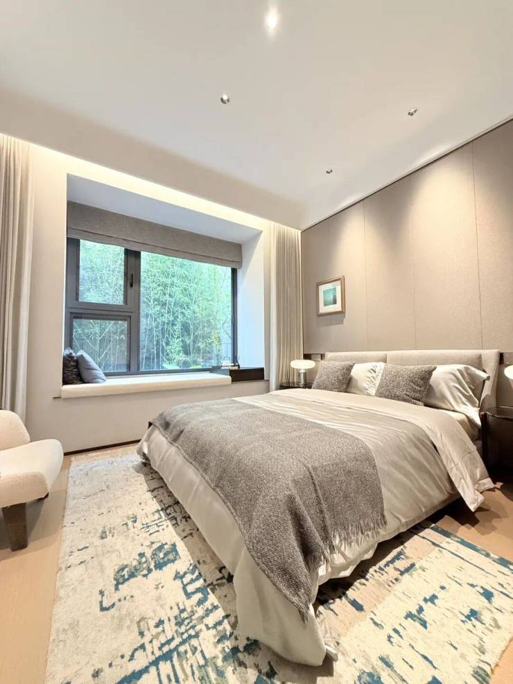 建筑设计注重窗墙比优化,超大落地窗设计让室内采光最大化,同时将室外江景、城景与园景引入室内,实现景观与建筑的完美融合。外立面材质均采用耐久、抗腐蚀的高端材料,历经岁月洗礼依旧质感如新,成为黄浦滨江天际线上的优雅坐标。同时,建筑在隔音、隔热、防水、保温等性能上均采用顶豪标准,为业主营造静谧、舒适、健康的居住空间。