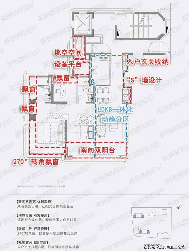 三开间朝南、南向双阳台设计、经典动静分离、超强附赠 户型,其中 108㎡边套户型可赠送约18㎡! 完全可以满足年轻家庭改善居住。