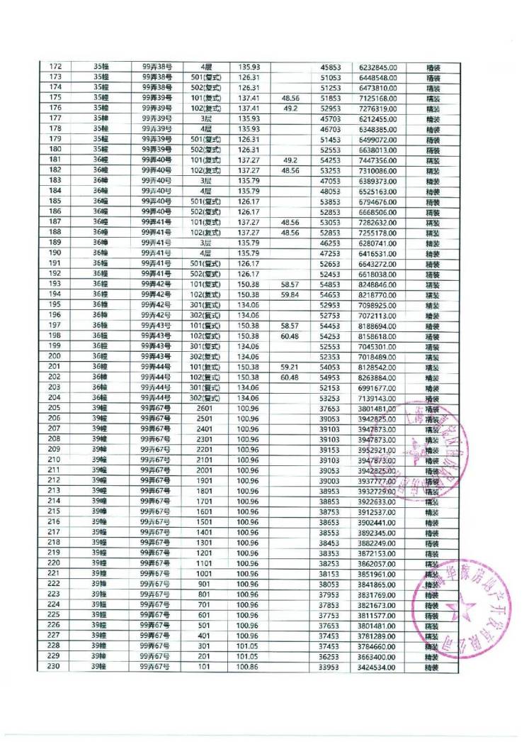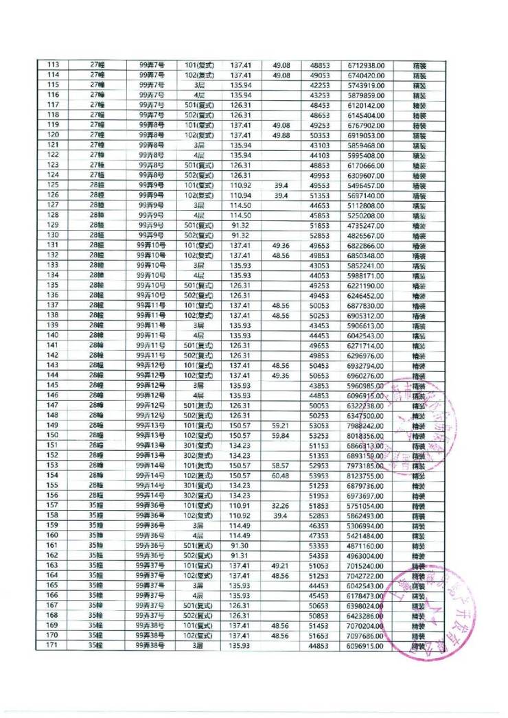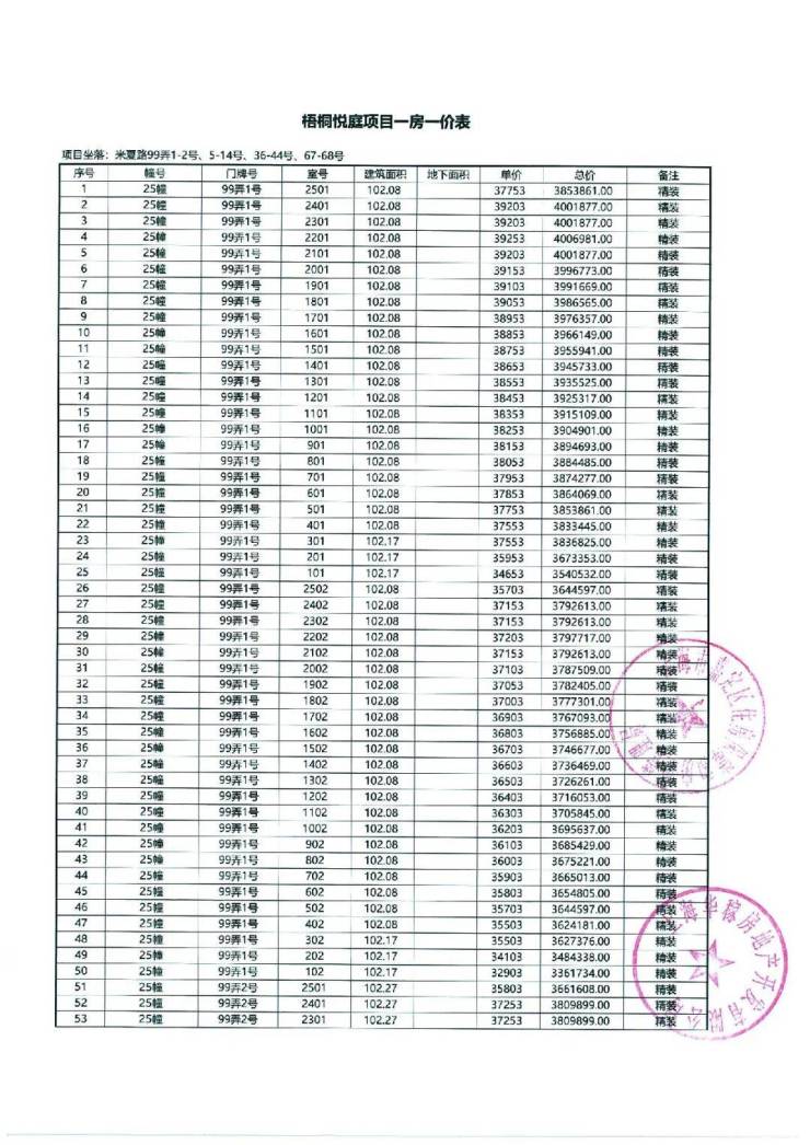 以下为项目最新一房一价表