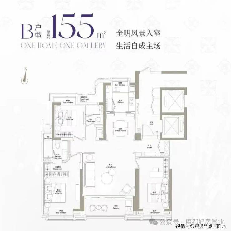 六、全周期户型矩阵:155-193㎡精装 3-4 房,高得房率 + 全明通透