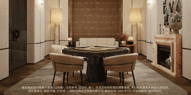 在约200米的超规模中轴中,建发海宸融入了黄浦秋涛、夜月涟漪、凤亭问泉、华亭烟雨、海天华堂,构筑了高定园林空间。