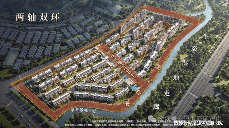 地块更是先天禀赋出众, 三面被绿地与水系环抱,东侧依次排布滨河景观带、城市公共绿地与生态走廊,层层递进,自然景致连绵不断。