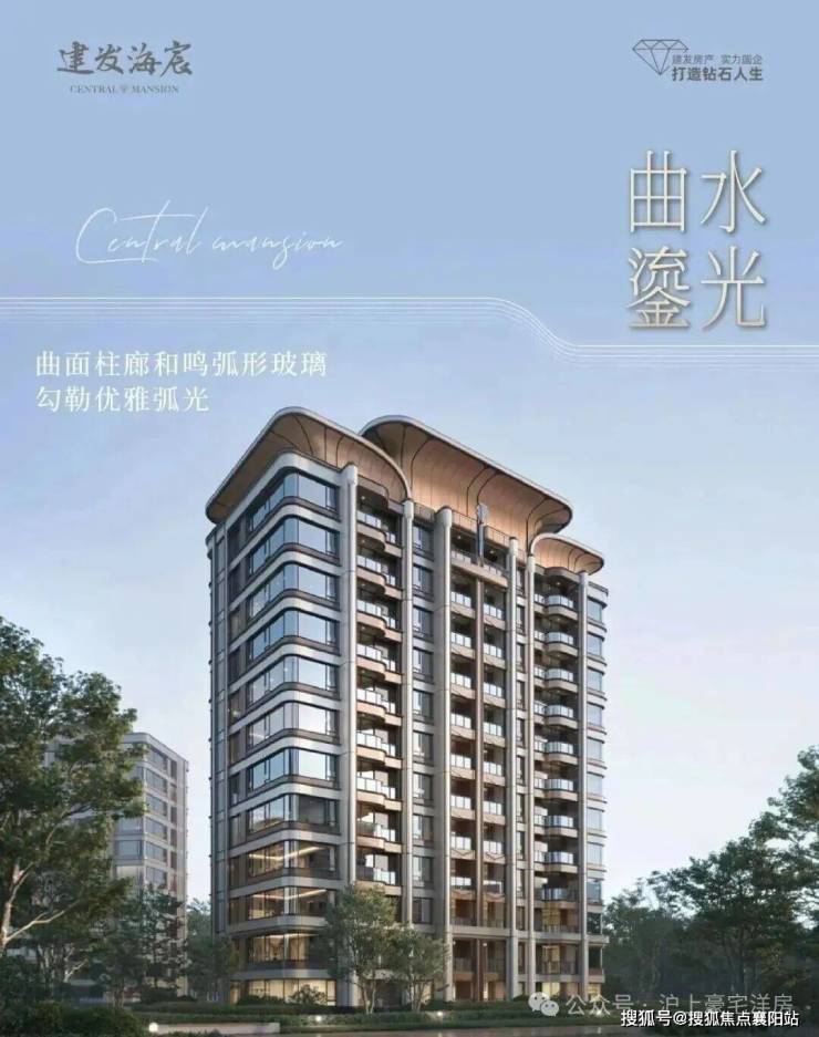建发「宸系」中式作品,铝板与玻璃幕墙外立面,配园林景观。约1150套房源高低配,限高40米,含小高层、洋房、叠墅产品,满足刚需与改善需求。