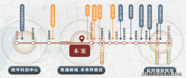 第一:超配交通, 17号线直线约800米 ,3站华为科创能量圈、4站赵巷产业圈、8站虹桥国际商务圈。