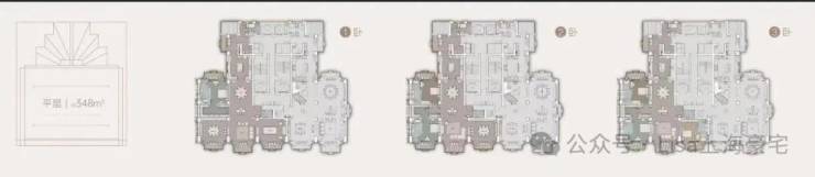 3号楼单元建筑面积:约600㎡—1220㎡住宅部分全部大平层(复式)设计.