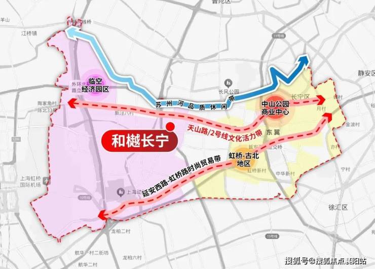 21世纪,伴随着虹桥崛起和2号线的贯通,天山路/2号线双命脉重合,东段承载中山公园CBD商务和天山商圈商业功能,中段聚焦文教居住,西段对接虹桥临空经济区,天山路成为了 长宁新时代的中轴线和发展重点。