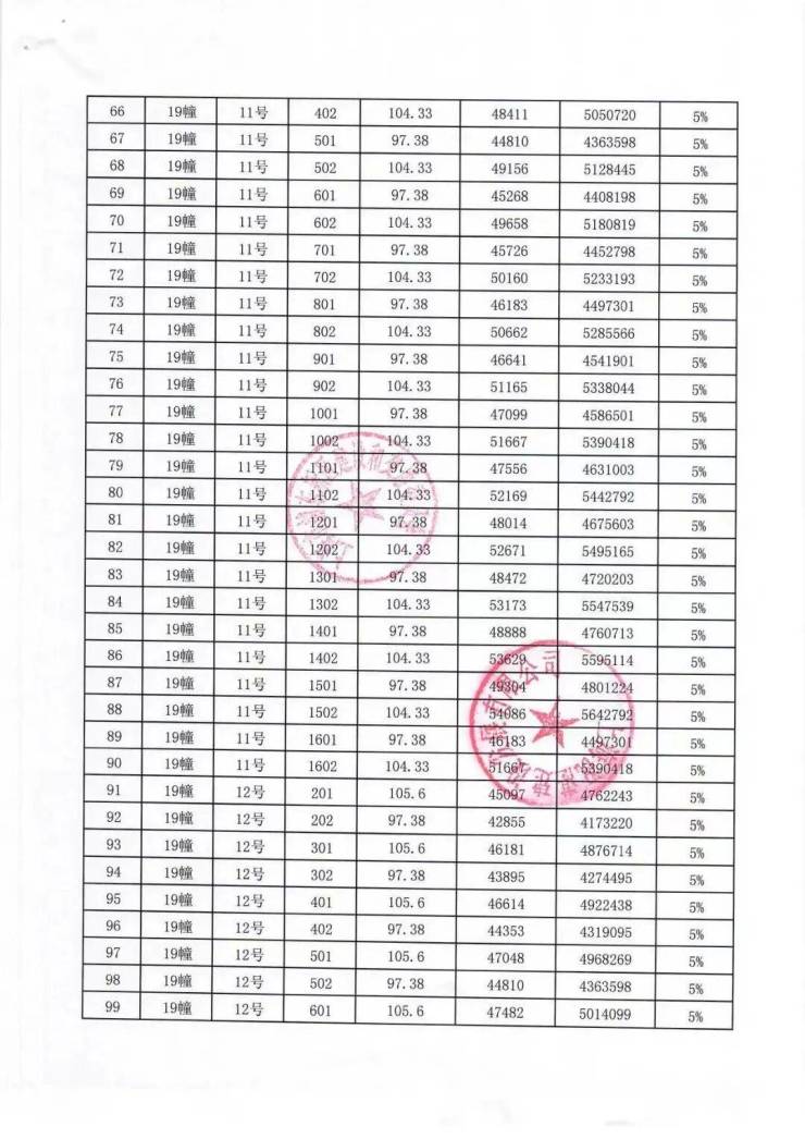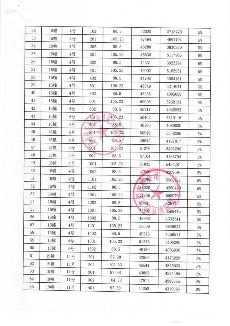 一房一价表: