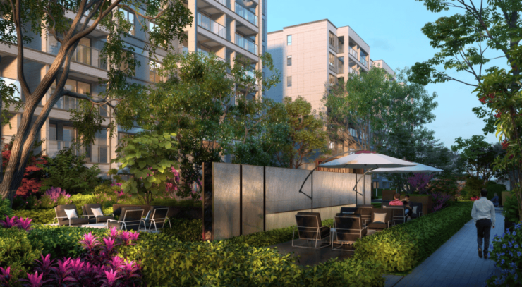 更难得的是,上实云端自身打造的是低密生态洋房社区,容积率仅1.5,社区内绿化率高达35%以上,打造了“一轴一心一带四组团”的景观规划,将自然之美与建筑之艺完美融合,让业主在社区内就能享受优质的生态体验。社区内种植了大量绿植,打造了景观草坪、林荫步道、花卉组团等多个景观节点,一步一景,实现人与自然的和谐共生;同时,社区内还打造了景观会客花园、邻里休闲花园等自然式社交空间,业主可以在绿意环绕中休憩、社交,寻回生活本该有的奢适与惬意。