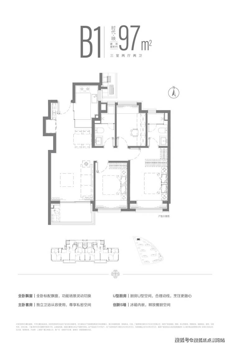 建面约97m²三房两厅两卫户型,全卧+主卫飘窗配置,并通过飞机户型空间布局,提升了空间的使用效率,让温情在自然中自然发生。