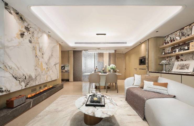 项目 精装交付 ,装修标准达 8000-12000 元 /㎡ , 中央空调、地暖、新风系统三大件全配 ,由 梁志天团队设计 ,核心配置均为国际一线品牌,品质感十足:
